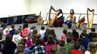 This one features Cazadero Performing Arts Family Camp. It was my first time there. Not long ago I was doing a concert in Oakland, and an important person was in the audience. She heard me talk about my traveling harps, and thought it would be perfect for the Camp that she runs. It’s for kids of all ages to come and learn various arts and musical styles and instruments. I was happy to do it and had a wonderful time. I met many new friends and kindred spirits and learned that I actually love to teach! I have done a lot of workshops in the past, but this was every day four classes, about half the people were younger kids around eight years old.