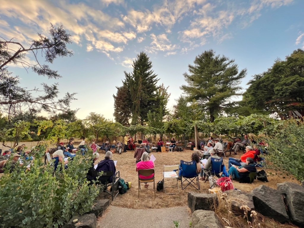 This is one of our favorite events. Everyone gets a songbook with lyrics and gets to shout out which songs they want the musicians to play and we all sing together. It’s so much fun every year. The donation is only $5. to join for this musical picnic. There are fine musicians to accompany your favorite songs. If you are a musician you can bring along your carefully tuned instrument as well, the chords are on the songsheets too. You can come and go anytime you like during the three-hour event. Please let me know if you plan to come as I try to get a rough idea of how many folks to expect. This is more freestyle than the regular concerts where we keep careful track of seats.